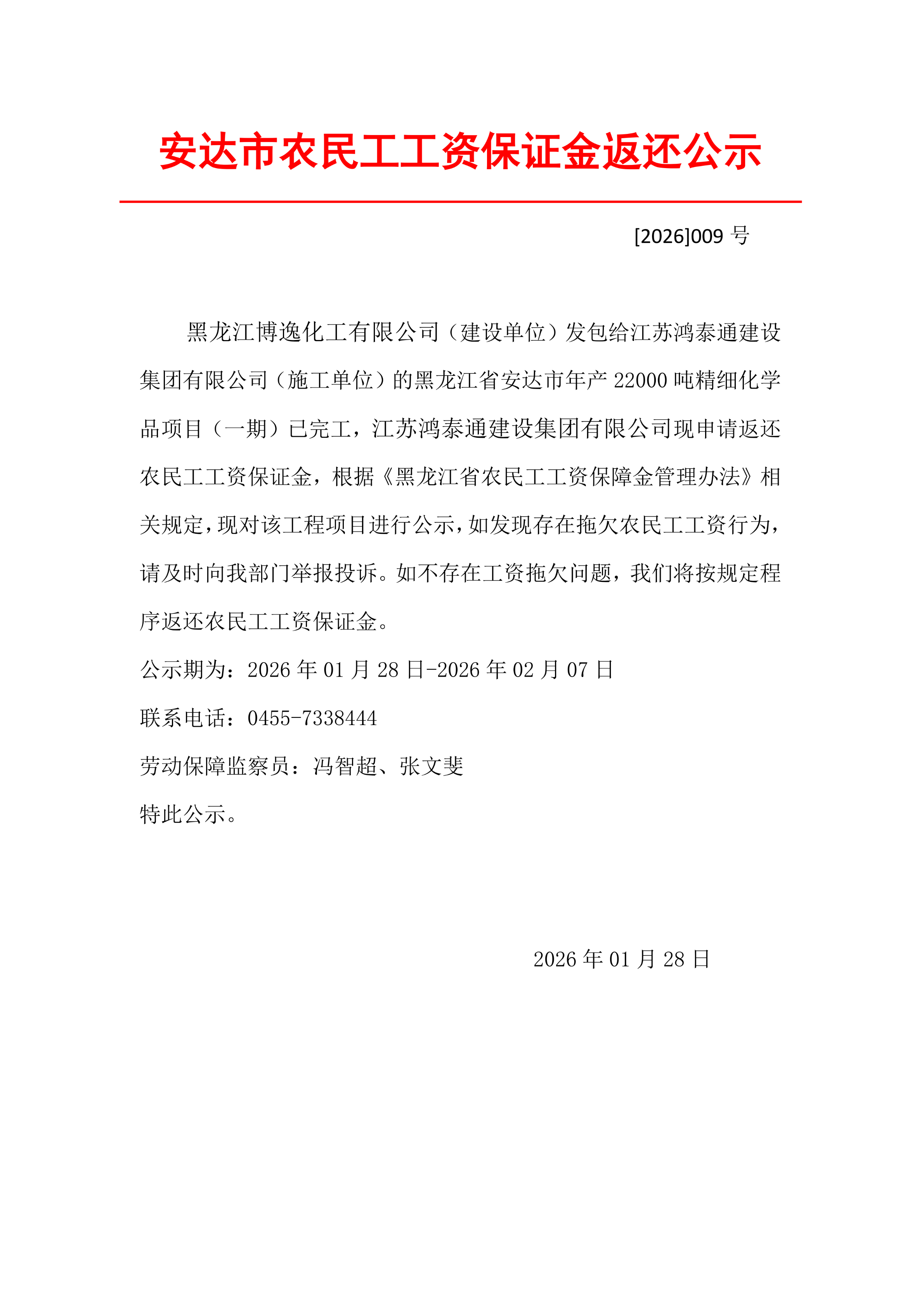 农民工工资保证金返还公示